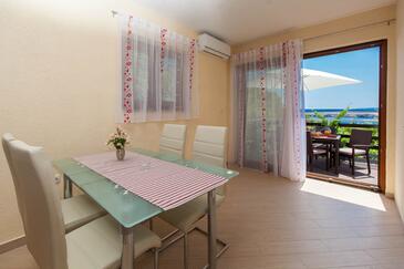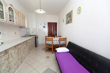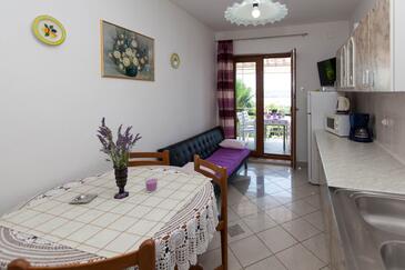 Ferienwohnung bietet Platz für 4 Gäste. Die Betten sind in Schlafzimmern, die es 2 gibt, innerhalb einer Gesamtfläche von 46m2, angeordnet. Die Gäste haben eine eigene Terrasse zur Verfügung, auf der sie in warmen Sommernächten genießen können. Das Apartment bietet Meerblick. Es ist erlaubt, Speisen auf dem Gemeinschafts-Grill vorzubereiten. In der Unterkunftseinheit besteht die Möglichkeit des Mitbringens von Haustieren gegen Aufpreis.