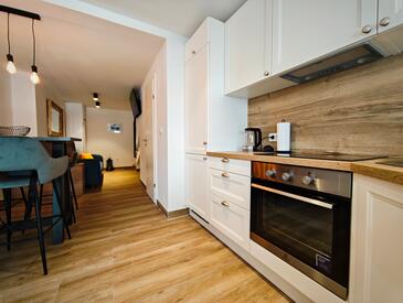 Haus bietet Platz für 4 Gäste. Die Betten sind in Schlafzimmern, die es 2 gibt, und in Wohnzimmer, innerhalb einer Gesamtfläche von 66m2, angeordnet. Die Gäste haben eine eigene Terrasse zur Verfügung, auf der sie in warmen Sommernächten genießen können. Für vollen Genuss und Entspannung gibt es einen privaten Grill für Gäste dieser Unterkunft.