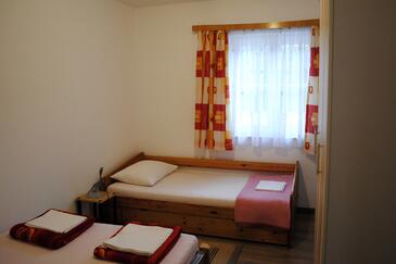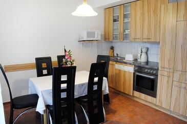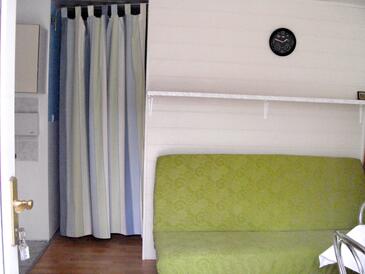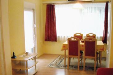 Ferienwohnung bietet Platz für 5 Gäste. Die Betten sind in Schlafzimmern, die es 2 gibt, innerhalb einer Gesamtfläche von 54m2, angeordnet. Die Gäste haben eine eigene Terrasse zur Verfügung, auf der sie in warmen Sommernächten genießen können. Das Apartment bietet Meerblick. Es ist erlaubt, Speisen auf dem Gemeinschafts-Grill vorzubereiten.