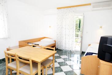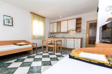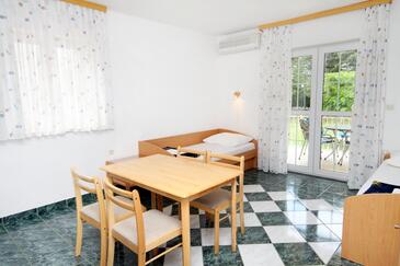 Ferienwohnung bietet Platz für 4 Gäste. Die Betten sind in Schlafzimmern, die es 1 gibt, und in Esszimmer, innerhalb einer Gesamtfläche von 40m2, angeordnet. Die Gäste haben eine eigene Terrasse zur Verfügung, auf der sie in warmen Sommernächten genießen können. Es ist erlaubt, Speisen auf dem Gemeinschafts-Grill vorzubereiten. Während ihres Aufenthalts können Gäste das gemeinsam zur Nutzung stehende Schwimmbad benutzen.
