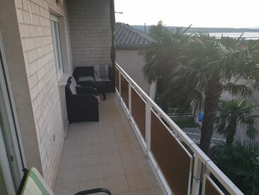 Ferienwohnung bietet Platz für 4 Gäste. Die Betten sind in Schlafzimmern, die es 2 gibt, innerhalb einer Gesamtfläche von 64m2, angeordnet. Die Gäste haben einen eigenen Balkon zur Verfügung, auf der sie in warmen Sommernächten genießen können. Das Apartment bietet Meerblick. Es ist erlaubt, Speisen auf dem Gemeinschafts-Grill vorzubereiten.