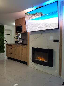 Ferienwohnung bietet Platz für 4 Gäste. Die Betten sind in Schlafzimmern, die es 1 gibt, und in Wohnzimmer, innerhalb einer Gesamtfläche von 47m2, angeordnet. Die Gäste haben eine eigene Terrasse zur Verfügung, auf der sie in warmen Sommernächten genießen können. Das Apartment bietet Meerblick. Es ist erlaubt, Speisen auf dem Gemeinschafts-Grill vorzubereiten.