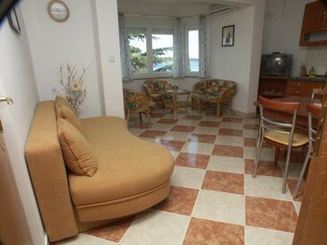 Ferienwohnung bietet Platz für 5 Gäste. Die Betten sind in Schlafzimmern, die es 2 gibt, und in Wohnzimmer, innerhalb einer Gesamtfläche von 51m2, angeordnet. Die Gäste haben eine eigene Terrasse zur Verfügung, auf der sie in warmen Sommernächten genießen können. Das Apartment bietet Meerblick. Unterkunftseinheit hat Räume, die von dem Rest der Einheit abgetrennt werden.
