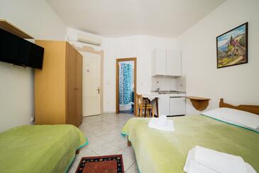 Ferienwohnung bietet Platz für 5 Gäste. Die Betten sind in Schlafzimmern, die es 2 gibt, und in Wohnzimmer, innerhalb einer Gesamtfläche von 89m2, angeordnet. Die Gäste haben eine eigene Terrasse zur Verfügung, auf der sie in warmen Sommernächten genießen können. Das Apartment bietet Meerblick.