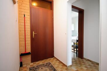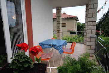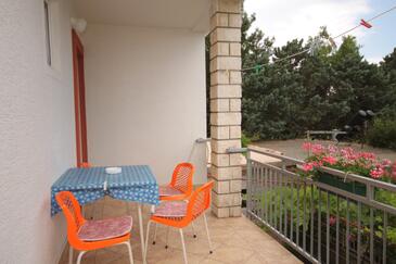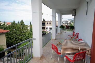 Ferienwohnung bietet Platz für 6 Gäste. Die Betten sind in Schlafzimmern, die es 2 gibt, innerhalb einer Gesamtfläche von 42m2, angeordnet. Die Gäste haben eine eigene Terrasse zur Verfügung, auf der sie in warmen Sommernächten genießen können. Das Apartment bietet Meerblick. Es ist erlaubt, Speisen auf dem Gemeinschafts-Grill vorzubereiten.