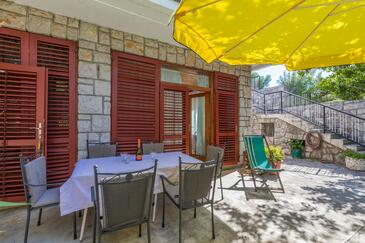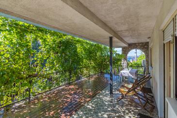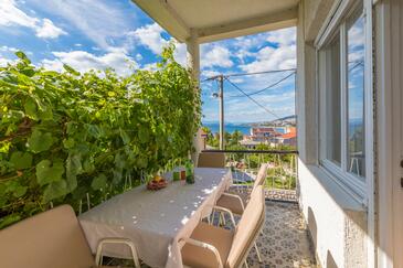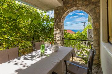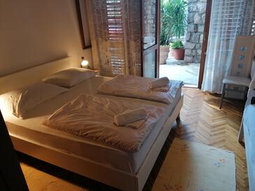 Ferienwohnung bietet Platz für 6 Gäste. Die Betten sind in Schlafzimmern, die es 2 gibt, innerhalb einer Gesamtfläche von 44m2, angeordnet. Die Gäste haben eine eigene Terrasse zur Verfügung, auf der sie in warmen Sommernächten genießen können. Es ist erlaubt, Speisen auf dem Gemeinschafts-Grill vorzubereiten.