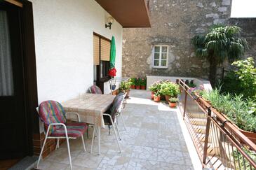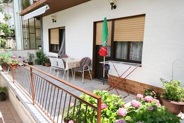 Ferienwohnung bietet Platz für 4 Gäste. Die Betten sind in Schlafzimmern, die es 2 gibt, innerhalb einer Gesamtfläche von 65m2, angeordnet. Die Gäste haben eine eigene Terrasse zur Verfügung, auf der sie in warmen Sommernächten genießen können.