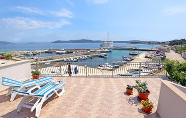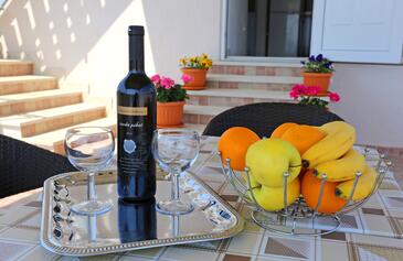 Ferienwohnung bietet Platz für 5 Gäste. Die Betten sind in Schlafzimmern, die es 2 gibt, und in Wohnzimmer, innerhalb einer Gesamtfläche von 60m2, angeordnet. Die Gäste haben eine eigene Terrasse zur Verfügung, auf der sie in warmen Sommernächten genießen können. Das Apartment bietet Meerblick. Es ist erlaubt, Speisen auf dem Gemeinschafts-Grill vorzubereiten.