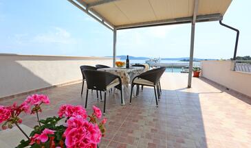 Ferienwohnung bietet Platz für 5 Gäste. Die Betten sind in Schlafzimmern, die es 2 gibt, und in Wohnzimmer, innerhalb einer Gesamtfläche von 60m2, angeordnet. Die Gäste haben eine eigene Terrasse zur Verfügung, auf der sie in warmen Sommernächten genießen können. Das Apartment bietet Meerblick. Es ist erlaubt, Speisen auf dem Gemeinschafts-Grill vorzubereiten.