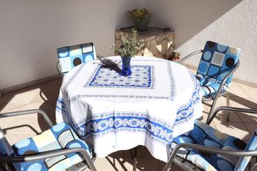 Ferienwohnung bietet Platz für 6 Gäste. Die Betten sind in Schlafzimmern, die es 2 gibt, und in Wohnzimmer, innerhalb einer Gesamtfläche von 54m2, angeordnet. Die Gäste haben eine eigene Terrasse zur Verfügung, auf der sie in warmen Sommernächten genießen können. Für vollen Genuss und Entspannung gibt es einen privaten Grill für Gäste dieser Unterkunft.