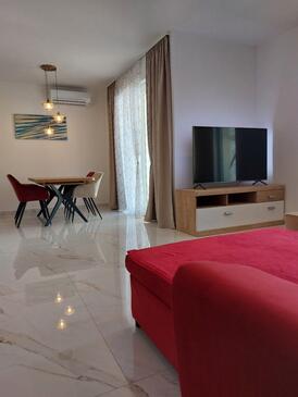 Ferienwohnung bietet Platz für 6 Gäste. Die Betten sind in Schlafzimmern, die es 2 gibt, und in Wohnzimmer, innerhalb einer Gesamtfläche von 83m2, angeordnet. Die Gäste haben eine eigene Terrasse zur Verfügung, auf der sie in warmen Sommernächten genießen können. Das Apartment bietet Meerblick. Für vollen Genuss und Entspannung gibt es einen privaten Grill für Gäste dieser Unterkunft. Während ihres Aufenthalts können Gäste das gemeinsam zur Nutzung stehende Schwimmbad benutzen. Räume der gebuchten Unterkunftseinheit werden nicht in eine Ganze verbunden.