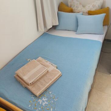 Haus bietet Platz für 5 Gäste. Die Betten sind in Schlafzimmern, die es 3 gibt, innerhalb einer Gesamtfläche von 60m2, angeordnet. Die Gäste haben eine eigene Terrasse zur Verfügung, auf der sie in warmen Sommernächten genießen können. Das Haus bietet Meerblick. Für vollen Genuss und Entspannung gibt es einen privaten Grill für Gäste dieser Unterkunft. In der Unterkunftseinheit besteht die Möglichkeit des Mitbringens von Haustieren, und die Dienstleistung ist im Preis der Unterkunft enthalten.