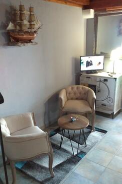 Haus bietet Platz für 4 Gäste. Die Betten sind in Schlafzimmern, die es 2 gibt, innerhalb einer Gesamtfläche von 46m2, angeordnet. Die Gäste haben eine eigene Terrasse zur Verfügung, auf der sie in warmen Sommernächten genießen können. Das Haus bietet Meerblick. Für vollen Genuss und Entspannung gibt es einen privaten Grill für Gäste dieser Unterkunft. Während ihres Aufenthalts können sich Gäste im privaten Schwimmbad entspannen. In der gebuchten Unterkunftseinheit zahlt man am Ort ein Depositum ( der Preis ist an der Internetseite angeführt ).