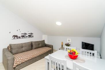Ferienwohnung bietet Platz für 5 Gäste. Die Betten sind in Schlafzimmern, die es 2 gibt, und in Wohnzimmer, innerhalb einer Gesamtfläche von 45m2, angeordnet. Die Gäste haben einen eigenen Balkon zur Verfügung, auf der sie in warmen Sommernächten genießen können. Das Apartment bietet Meerblick.