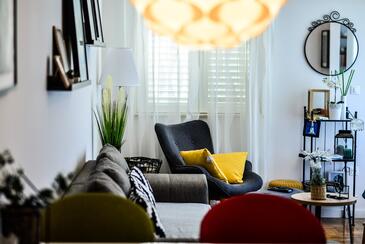 Ferienwohnung bietet Platz für 6 Gäste. Die Betten sind in Schlafzimmern, die es 3 gibt, innerhalb einer Gesamtfläche von 69m2, angeordnet. Die Gäste haben einen eigenen Balkon zur Verfügung, auf der sie in warmen Sommernächten genießen können. Das Apartment bietet Meerblick.