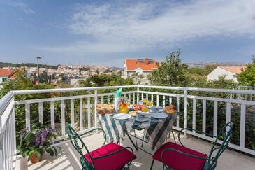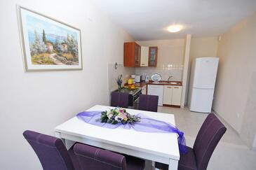 Ferienwohnung bietet Platz für 6 Gäste. Die Betten sind in Schlafzimmern, die es 2 gibt, und in Wohnzimmer, innerhalb einer Gesamtfläche von 66m2, angeordnet. Die Gäste haben eine eigene Terrasse zur Verfügung, auf der sie in warmen Sommernächten genießen können. Es ist erlaubt, Speisen auf dem Gemeinschafts-Grill vorzubereiten. Durch die Terrasse der gebuchten Unterkunftseinheit gehen auch andere Gäste oder Vermieter. Unterkunftseinheit hat Räume, die von dem Rest der Einheit abgetrennt werden. In der gebuchten Unterkunftseinheit zahlt man am Ort ein Depositum ( der Preis ist an der Internetseite angeführt ).