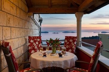Ferienwohnung bietet Platz für 4 Gäste. Die Betten sind in Schlafzimmern, die es 2 gibt, innerhalb einer Gesamtfläche von 56m2, angeordnet. Die Gäste haben eine eigene Terrasse zur Verfügung, auf der sie in warmen Sommernächten genießen können. Das Apartment bietet Meerblick. Es ist erlaubt, Speisen auf dem Gemeinschafts-Grill vorzubereiten. Durch die Terrasse der gebuchten Unterkunftseinheit gehen auch andere Gäste oder Vermieter.