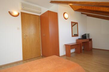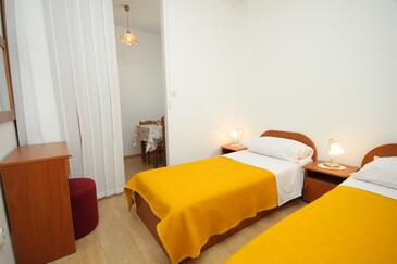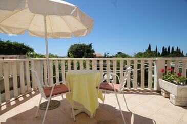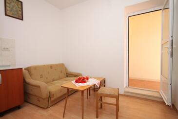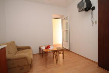 Ferienwohnung bietet Platz für 4 Gäste. Die Betten sind in Schlafzimmern, die es 2 gibt, innerhalb einer Gesamtfläche von 37m2, angeordnet. Die Gäste haben eine eigene Terrasse zur Verfügung, auf der sie in warmen Sommernächten genießen können. Das Apartment bietet Meerblick. Es ist erlaubt, Speisen auf dem Gemeinschafts-Grill vorzubereiten.