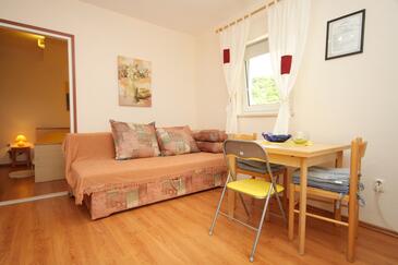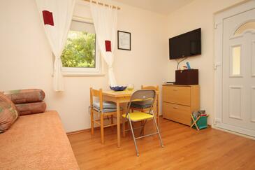 Ferienwohnung bietet Platz für 4 Gäste. Die Betten sind in Schlafzimmern, die es 1 gibt, und in Wohnzimmer, innerhalb einer Gesamtfläche von 31m2, angeordnet. Die Gäste haben eine eigene Terrasse zur Verfügung, auf der sie in warmen Sommernächten genießen können. Das Apartment bietet Meerblick. Es ist erlaubt, Speisen auf dem Gemeinschafts-Grill vorzubereiten.