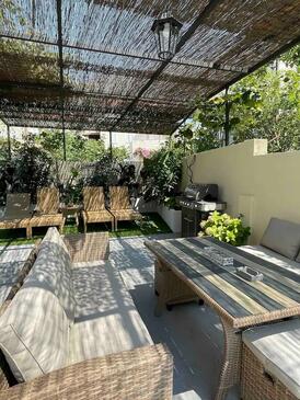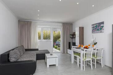 Ferienwohnung bietet Platz für 4 Gäste. Die Betten sind in Schlafzimmern, die es 2 gibt, innerhalb einer Gesamtfläche von 55m2, angeordnet. Die Gäste haben eine eigene Terrasse zur Verfügung, auf der sie in warmen Sommernächten genießen können. Für vollen Genuss und Entspannung gibt es einen privaten Grill für Gäste dieser Unterkunft.