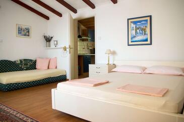 Ferienwohnung bietet Platz für 3 Gäste. Die Betten sind in Schlafzimmern, die es 1 gibt, innerhalb einer Gesamtfläche von 32m2, angeordnet. Die Gäste haben eine eigene Terrasse zur Verfügung, auf der sie in warmen Sommernächten genießen können. Das Apartment bietet Meerblick. Es ist erlaubt, Speisen auf dem Gemeinschafts-Grill vorzubereiten. In der Unterkunftseinheit besteht die Möglichkeit des Mitbringens von Haustieren gegen Aufpreis.