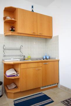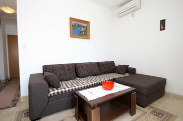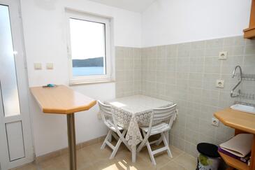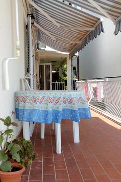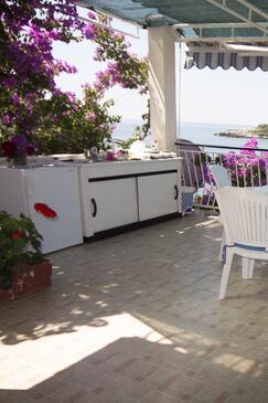 Ferienwohnung bietet Platz für 4 Gäste. Die Betten sind in Schlafzimmern, die es 2 gibt, innerhalb einer Gesamtfläche von 40m2, angeordnet. Die Gäste haben eine eigene Terrasse zur Verfügung, auf der sie in warmen Sommernächten genießen können. Das Apartment bietet Meerblick. Es ist erlaubt, Speisen auf dem Gemeinschafts-Grill vorzubereiten.