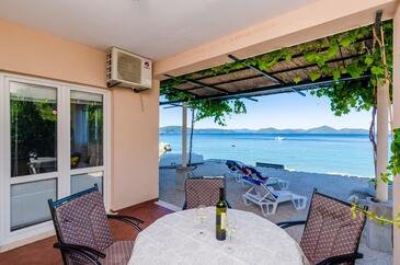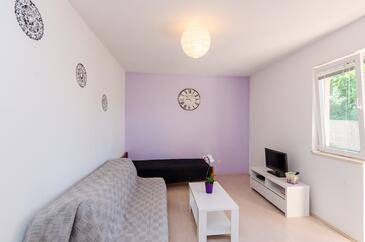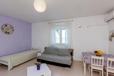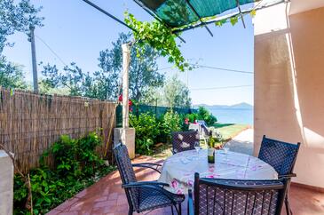 Ferienwohnung bietet Platz für 4 Gäste. Die Betten sind in Schlafzimmern, die es 1 gibt, und in Wohnzimmer, innerhalb einer Gesamtfläche von 47m2, angeordnet. Die Gäste haben eine eigene Terrasse zur Verfügung, auf der sie in warmen Sommernächten genießen können. Das Apartment bietet Meerblick. Es ist erlaubt, Speisen auf dem Gemeinschafts-Grill vorzubereiten.