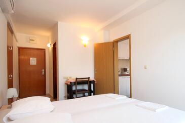 Ferienwohnung bietet Platz für 4 Gäste. Die Betten sind in Schlafzimmern, die es 2 gibt, innerhalb einer Gesamtfläche von 42m2, angeordnet. Die Gäste haben eine eigene Terrasse zur Verfügung, auf der sie in warmen Sommernächten genießen können. Das Apartment bietet Meerblick. Es ist erlaubt, Speisen auf dem Gemeinschafts-Grill vorzubereiten. In der Unterkunftseinheit besteht die Möglichkeit des Mitbringens von Haustieren gegen Aufpreis.