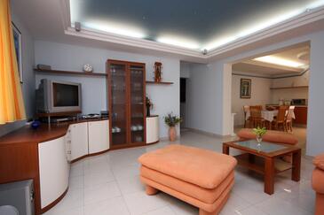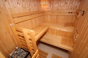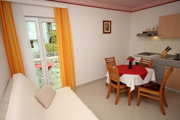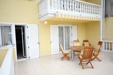 Ferienwohnung bietet Platz für 4 Gäste. Die Betten sind in Schlafzimmern, die es 2 gibt, innerhalb einer Gesamtfläche von 75m2, angeordnet. Die Gäste haben eine eigene Terrasse zur Verfügung, auf der sie in warmen Sommernächten genießen können. Das Apartment bietet Meerblick. Es ist erlaubt, Speisen auf dem Gemeinschafts-Grill vorzubereiten. In der Unterkunftseinheit besteht die Möglichkeit des Mitbringens von Haustieren gegen Aufpreis.