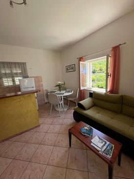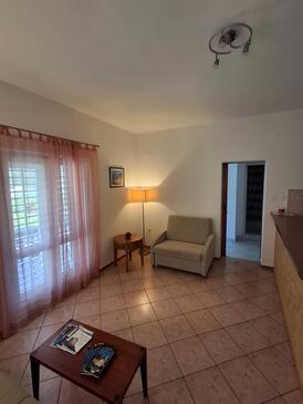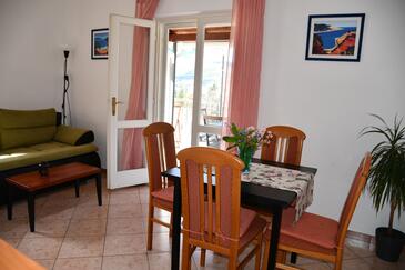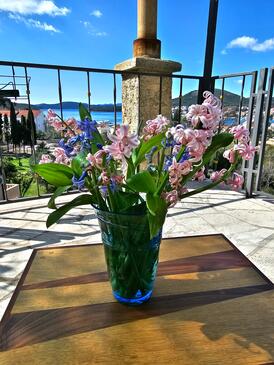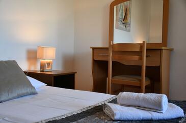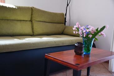 Ferienwohnung bietet Platz für 6 Gäste. Die Betten sind in Schlafzimmern, die es 2 gibt, und in Wohnzimmer, innerhalb einer Gesamtfläche von 63m2, angeordnet. Die Gäste haben eine eigene Terrasse zur Verfügung, auf der sie in warmen Sommernächten genießen können. Das Apartment bietet Meerblick. Es ist erlaubt, Speisen auf dem Gemeinschafts-Grill vorzubereiten.