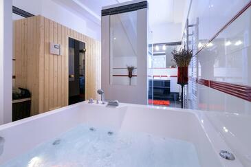 Haus bietet Platz für 10 Gäste. Die Betten sind in Schlafzimmern, die es 4 gibt, und in Wohnzimmer, innerhalb einer Gesamtfläche von 279m2, angeordnet. Die Gäste haben eine eigene Terrasse zur Verfügung, auf der sie in warmen Sommernächten genießen können. Das Haus bietet Meerblick. Für vollen Genuss und Entspannung gibt es einen privaten Grill für Gäste dieser Unterkunft. Während ihres Aufenthalts können sich Gäste im privaten Schwimmbad entspannen.