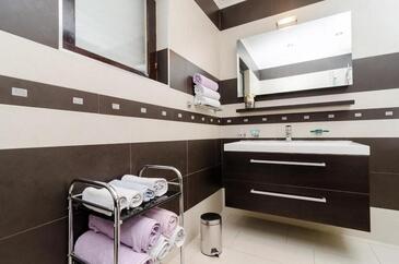 Ferienwohnung bietet Platz für 10 Gäste. Die Betten sind in Schlafzimmern, die es 5 gibt, innerhalb einer Gesamtfläche von 155m2, angeordnet. Die Gäste haben eine eigene Terrasse zur Verfügung, auf der sie in warmen Sommernächten genießen können. Das Apartment bietet Meerblick. Für vollen Genuss und Entspannung gibt es einen privaten Grill für Gäste dieser Unterkunft. Während ihres Aufenthalts können Gäste das gemeinsam zur Nutzung stehende Schwimmbad benutzen. Räume der gebuchten Unterkunftseinheit werden nicht in eine Ganze verbunden.