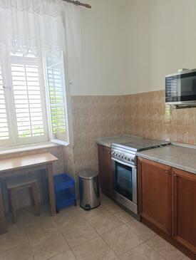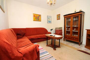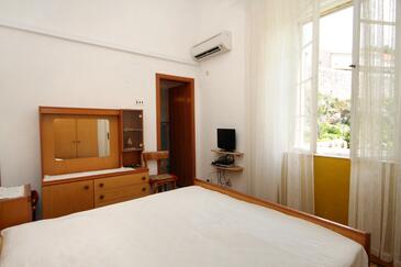Ferienwohnung bietet Platz für 4 Gäste. Die Betten sind in Schlafzimmern, die es 2 gibt, innerhalb einer Gesamtfläche von 48m2, angeordnet. Die Gäste haben eine eigene Terrasse zur Verfügung, auf der sie in warmen Sommernächten genießen können. Das Apartment bietet Meerblick. Es ist erlaubt, Speisen auf dem Gemeinschafts-Grill vorzubereiten.