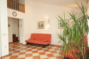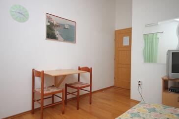 Ferienwohnung bietet Platz für 4 Gäste. Die Betten sind in Schlafzimmern, die es 1 gibt, und in Wohnzimmer, innerhalb einer Gesamtfläche von 54m2, angeordnet. Die Gäste haben eine eigene Terrasse zur Verfügung, auf der sie in warmen Sommernächten genießen können. Das Apartment bietet Meerblick. Es ist erlaubt, Speisen auf dem Gemeinschafts-Grill vorzubereiten.