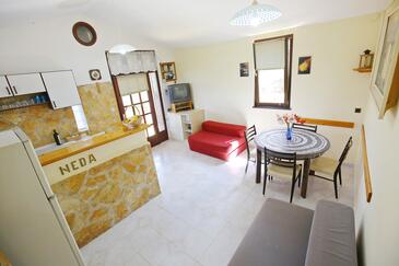 Haus bietet Platz für 2 Gäste. Die Betten sind in Schlafzimmern, die es 1 gibt, innerhalb einer Gesamtfläche von 31m2, angeordnet. Die Gäste haben eine eigene Terrasse zur Verfügung, auf der sie in warmen Sommernächten genießen können. Das Haus bietet Meerblick. Für vollen Genuss und Entspannung gibt es einen privaten Grill für Gäste dieser Unterkunft.
