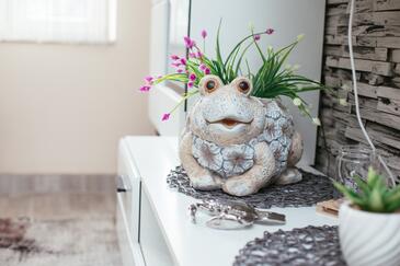 Haus bietet Platz für 6 Gäste. Die Betten sind in Schlafzimmern, die es 3 gibt, innerhalb einer Gesamtfläche von 81m2, angeordnet. Die Gäste haben eine eigene Terrasse zur Verfügung, auf der sie in warmen Sommernächten genießen können. Das Haus bietet Meerblick. Für vollen Genuss und Entspannung gibt es einen privaten Grill für Gäste dieser Unterkunft. In der Unterkunftseinheit besteht die Möglichkeit des Mitbringens von Haustieren gegen Aufpreis.