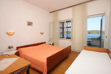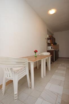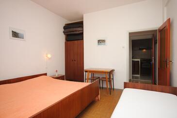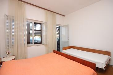 Ferienwohnung bietet Platz für 6 Gäste. Die Betten sind in Schlafzimmern, die es 2 gibt, innerhalb einer Gesamtfläche von 50m2, angeordnet. Die Gäste haben eine eigene Terrasse zur Verfügung, auf der sie in warmen Sommernächten genießen können. Das Apartment bietet Meerblick. Es ist erlaubt, Speisen auf dem Gemeinschafts-Grill vorzubereiten. In der Unterkunftseinheit besteht die Möglichkeit des Mitbringens von Haustieren gegen Aufpreis.