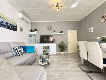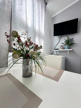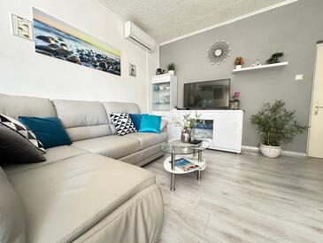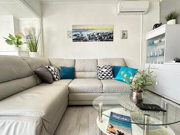 Ferienwohnung bietet Platz für 4 Gäste. Die Betten sind in Schlafzimmern, die es 2 gibt, innerhalb einer Gesamtfläche von 60m2, angeordnet. Die Gäste haben eine eigene Terrasse zur Verfügung, auf der sie in warmen Sommernächten genießen können. Das Apartment bietet Meerblick.