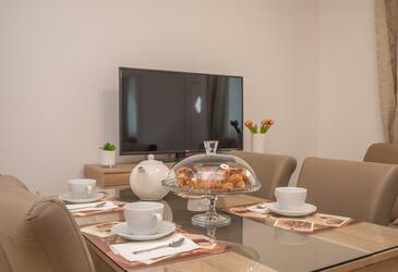 Ferienwohnung bietet Platz für 4 Gäste. Die Betten sind in Schlafzimmern, die es 2 gibt, innerhalb einer Gesamtfläche von 42m2, angeordnet. Die Gäste haben eine eigene Terrasse zur Verfügung, auf der sie in warmen Sommernächten genießen können. Es ist erlaubt, Speisen auf dem Gemeinschafts-Grill vorzubereiten.