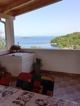 Ferienwohnung bietet Platz für 4 Gäste. Die Betten sind in Schlafzimmern, die es 2 gibt, innerhalb einer Gesamtfläche von 60m2, angeordnet. Die Gäste haben eine eigene Terrasse zur Verfügung, auf der sie in warmen Sommernächten genießen können. Das Apartment bietet Meerblick. Es ist erlaubt, Speisen auf dem Gemeinschafts-Grill vorzubereiten.