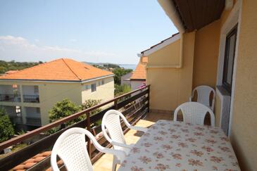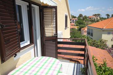 Ferienwohnung bietet Platz für 5 Gäste. Die Betten sind in Schlafzimmern, die es 2 gibt, innerhalb einer Gesamtfläche von 44m2, angeordnet. Die Gäste haben einen eigenen Balkon zur Verfügung, auf der sie in warmen Sommernächten genießen können. Das Apartment bietet Meerblick. Es ist erlaubt, Speisen auf dem Gemeinschafts-Grill vorzubereiten.