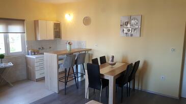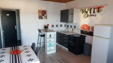 Ferienwohnung bietet Platz für 3 Gäste. Die Betten sind in Schlafzimmern, die es 1 gibt, und in Esszimmer, innerhalb einer Gesamtfläche von 38m2, angeordnet. Die Gäste haben eine eigene Terrasse zur Verfügung, auf der sie in warmen Sommernächten genießen können. Das Apartment bietet Meerblick. Es ist erlaubt, Speisen auf dem Gemeinschafts-Grill vorzubereiten.