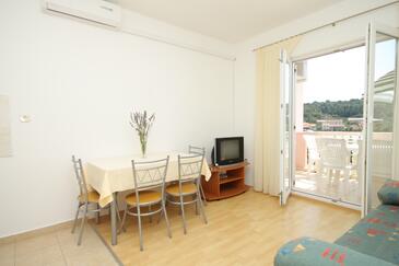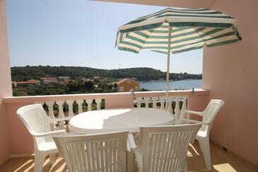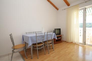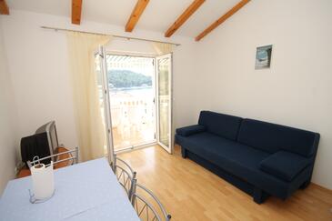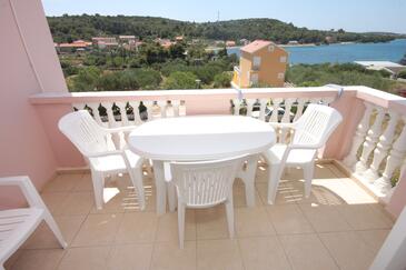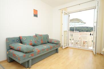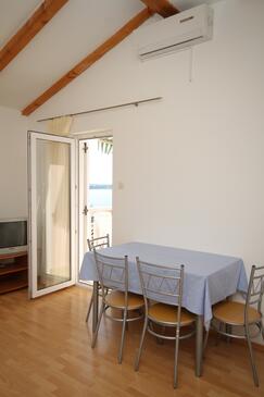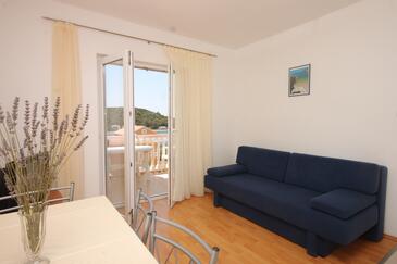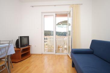 Ferienwohnung bietet Platz für 4 Gäste. Die Betten sind in Schlafzimmern, die es 1 gibt, und in Esszimmer, innerhalb einer Gesamtfläche von 36m2, angeordnet. Die Gäste haben eine eigene Terrasse zur Verfügung, auf der sie in warmen Sommernächten genießen können. Das Apartment bietet Meerblick. Es ist erlaubt, Speisen auf dem Gemeinschafts-Grill vorzubereiten.