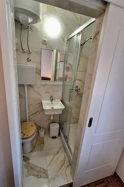 Ferienwohnung bietet Platz für 4 Gäste. Die Betten sind in Schlafzimmern, die es 1 gibt, und in Esszimmer, innerhalb einer Gesamtfläche von 32m2, angeordnet. Die Gäste haben eine eigene Terrasse zur Verfügung, auf der sie in warmen Sommernächten genießen können. Das Apartment bietet Meerblick. Es ist erlaubt, Speisen auf dem Gemeinschafts-Grill vorzubereiten.
