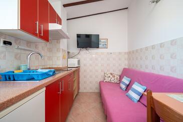 Ferienwohnung bietet Platz für 4 Gäste. Die Betten sind in Schlafzimmern, die es 2 gibt, innerhalb einer Gesamtfläche von 33m2, angeordnet. Die Gäste haben eine eigene Terrasse zur Verfügung, auf der sie in warmen Sommernächten genießen können. Das Apartment bietet Meerblick. Für vollen Genuss und Entspannung gibt es einen privaten Grill für Gäste dieser Unterkunft. In der Unterkunftseinheit besteht die Möglichkeit des Mitbringens von Haustieren gegen Aufpreis.