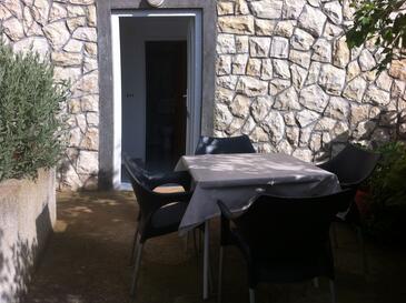 Ferienwohnung bietet Platz für 5 Gäste. Die Betten sind in Schlafzimmern, die es 2 gibt, und in Esszimmer, innerhalb einer Gesamtfläche von 46m2, angeordnet. Die Gäste haben eine eigene Terrasse zur Verfügung, auf der sie in warmen Sommernächten genießen können. Es ist erlaubt, Speisen auf dem Gemeinschafts-Grill vorzubereiten.