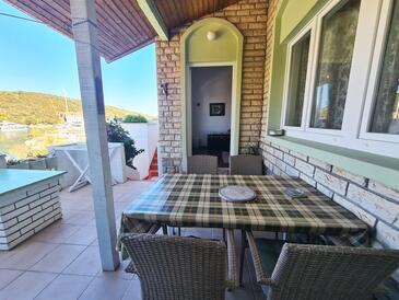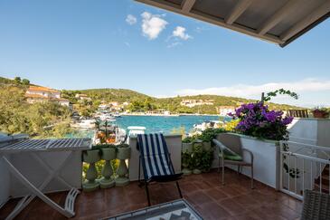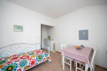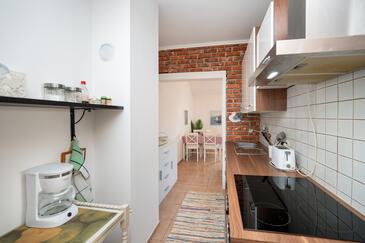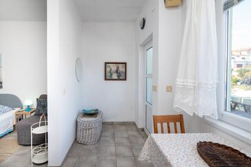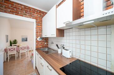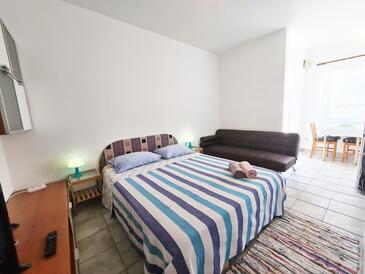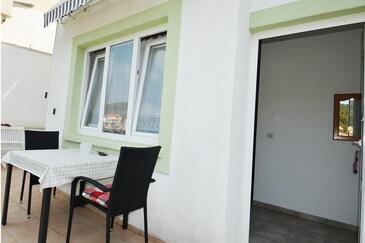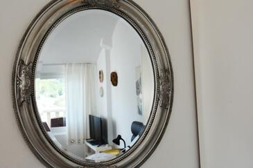 Ferienwohnung bietet Platz für 5 Gäste. Die Betten sind in Schlafzimmern, die es 2 gibt, und in Wohnzimmer, innerhalb einer Gesamtfläche von 70m2, angeordnet. Die Gäste haben eine eigene Terrasse zur Verfügung, auf der sie in warmen Sommernächten genießen können. Das Apartment bietet Meerblick. Es ist erlaubt, Speisen auf dem Gemeinschafts-Grill vorzubereiten. In der Unterkunftseinheit besteht die Möglichkeit des Mitbringens von Haustieren gegen Aufpreis.