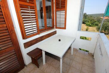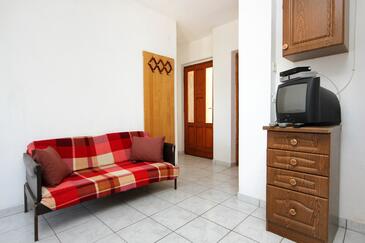 Ferienwohnung bietet Platz für 5 Gäste. Die Betten sind in Schlafzimmern, die es 2 gibt, und in Wohnzimmer, innerhalb einer Gesamtfläche von 42m2, angeordnet. Die Gäste haben eine eigene Terrasse zur Verfügung, auf der sie in warmen Sommernächten genießen können. Das Apartment bietet Meerblick. Es ist erlaubt, Speisen auf dem Gemeinschafts-Grill vorzubereiten. In der Unterkunftseinheit besteht die Möglichkeit des Mitbringens von Haustieren gegen Aufpreis.