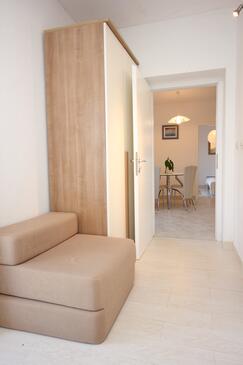 Ferienwohnung bietet Platz für 4 Gäste. Die Betten sind in Schlafzimmern, die es 2 gibt, innerhalb einer Gesamtfläche von 46m2, angeordnet. Die Gäste haben eine eigene Terrasse zur Verfügung, auf der sie in warmen Sommernächten genießen können. In der Unterkunftseinheit besteht die Möglichkeit des Mitbringens von Haustieren, und die Dienstleistung ist im Preis der Unterkunft enthalten. Durch die Terrasse der gebuchten Unterkunftseinheit gehen auch andere Gäste oder Vermieter.