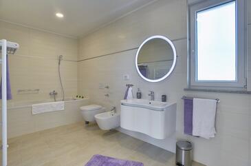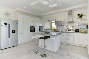 Haus bietet Platz für 6 Gäste. Die Betten sind in Schlafzimmern, die es 2 gibt, und in Wohnzimmer, innerhalb einer Gesamtfläche von 114m2, angeordnet. Die Gäste haben eine eigene Terrasse zur Verfügung, auf der sie in warmen Sommernächten genießen können. Das Haus bietet Meerblick. Für vollen Genuss und Entspannung gibt es einen privaten Grill für Gäste dieser Unterkunft. Während ihres Aufenthalts können sich Gäste im privaten Schwimmbad entspannen. In der gebuchten Unterkunftseinheit zahlt man am Ort ein Depositum ( der Preis ist an der Internetseite angeführt ).